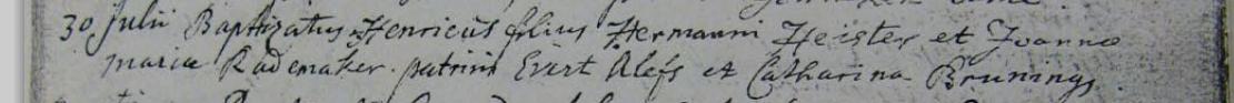 | Doop van een broer | Henricus Hijster (Heister) 30 juli 1748 (Leeftijd 2 jaar) Notitie: Getuigen: Evert Alefs, Catharina Brunings |