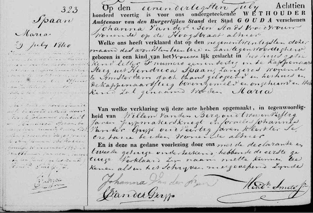 | Geboorte van een kleindochter #1 | Maria Cabalt (Kabalt) 29 juli 1840 (Leeftijd 44 jaar) Adres: Kappenaarsteeg. Wijk F, nr. 31 |