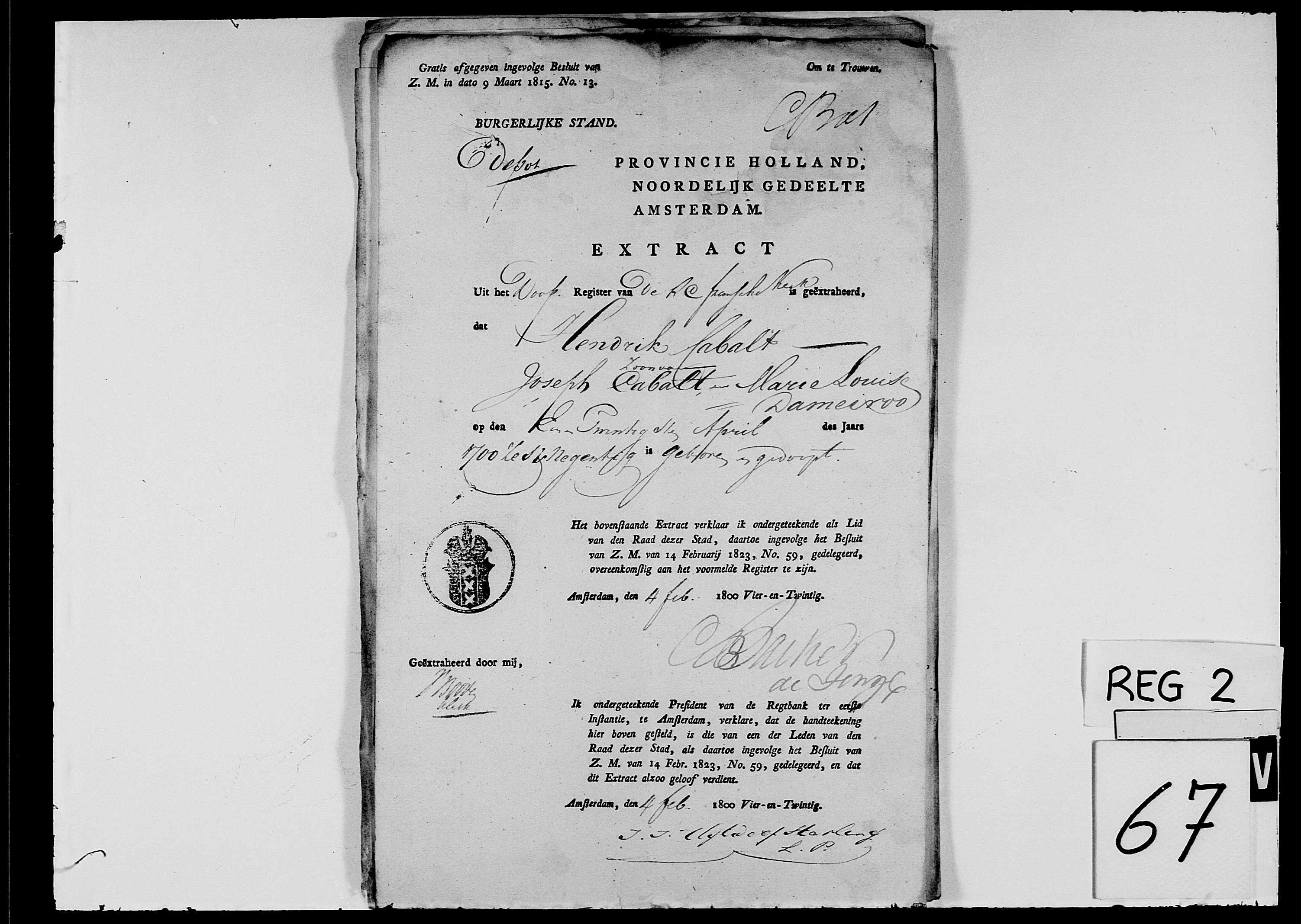 | Doop van een zoon | Josephus Joannes Cabalt (Kabalt) 22 augustus 1818 (Leeftijd 22 jaar) Adres: Frankrijkskerk Religie: Rooms-katholiek |