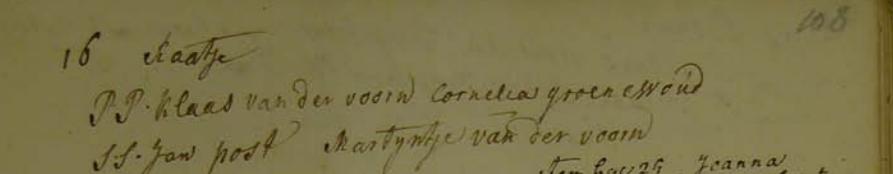 vader bruidegom Klaas van der Voorne (Voorn) (overleden 12-07-1808 te Aarlanderveen)
