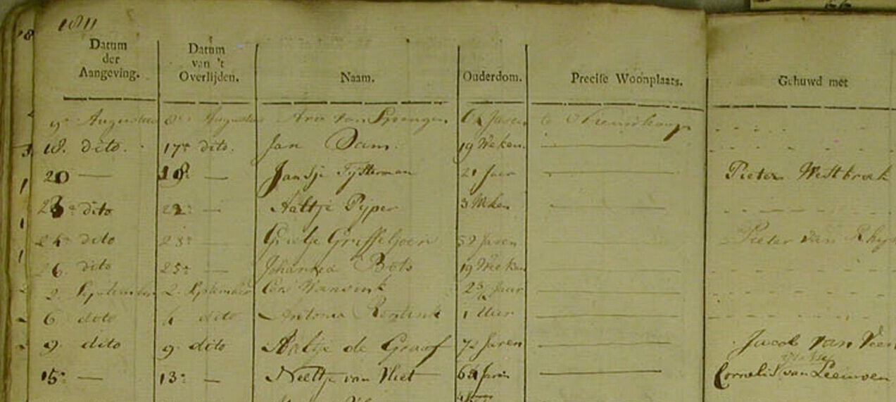 | Overlijden van moeder | Grietje Griffioen (Griffeljoen) 23 augustus 1811 – 23:30 uur (Leeftijd 13 jaar) |