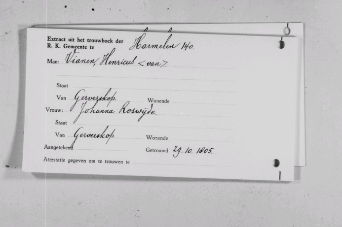| Huwelijk van een kind | Hendrik Vianen — Johanna ‘Hanna’ Rosweij — Bekijk dit gezin 29 oktober 1805 (Leeftijd 57 jaar) |