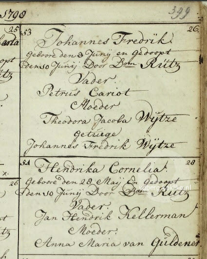 | Gedoopt | Gedoopt door predikant Franz Georg Christopher Rütz |