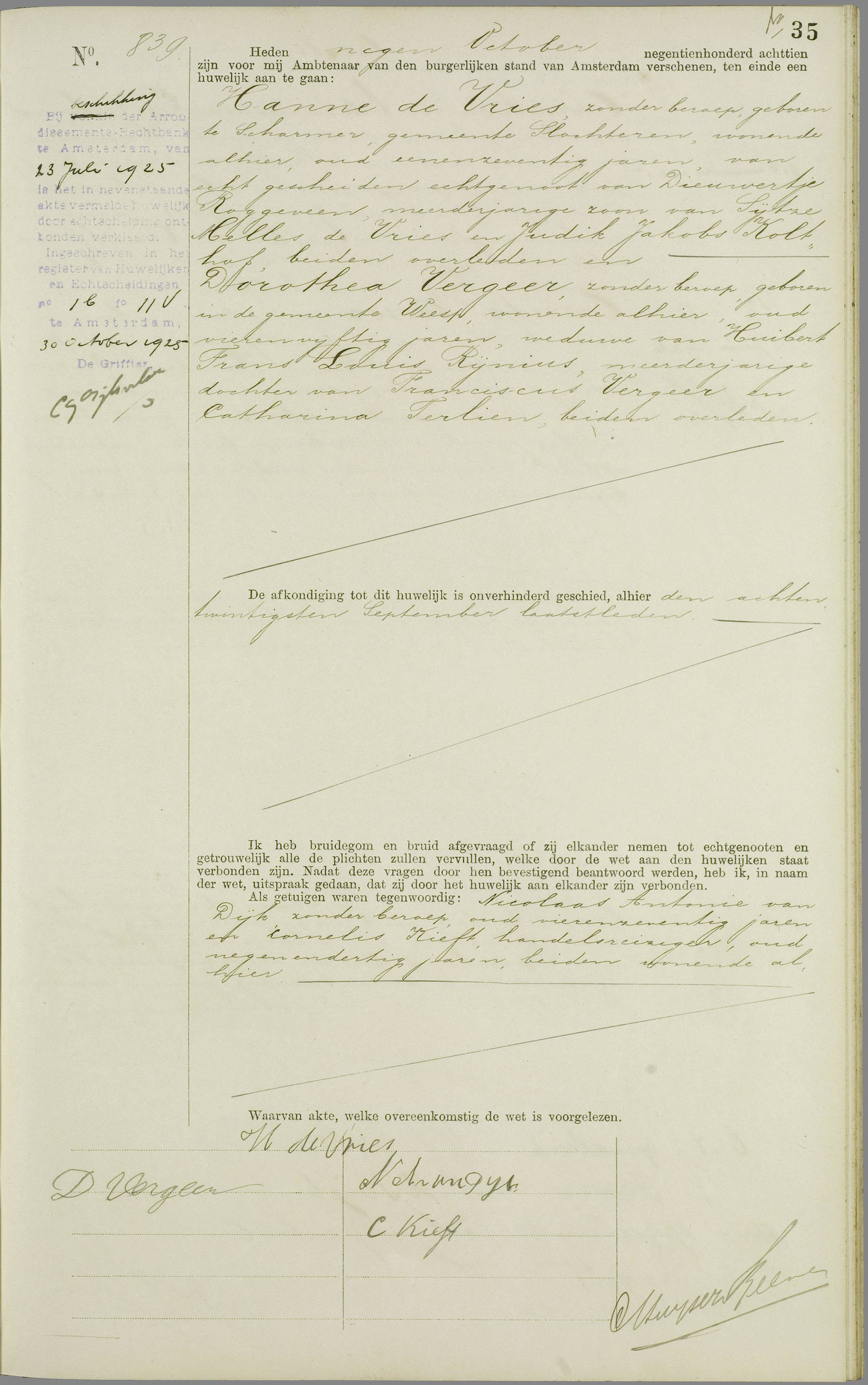Echtscheiding: 30 oktober 1925 — Amsterdam (N-H) |