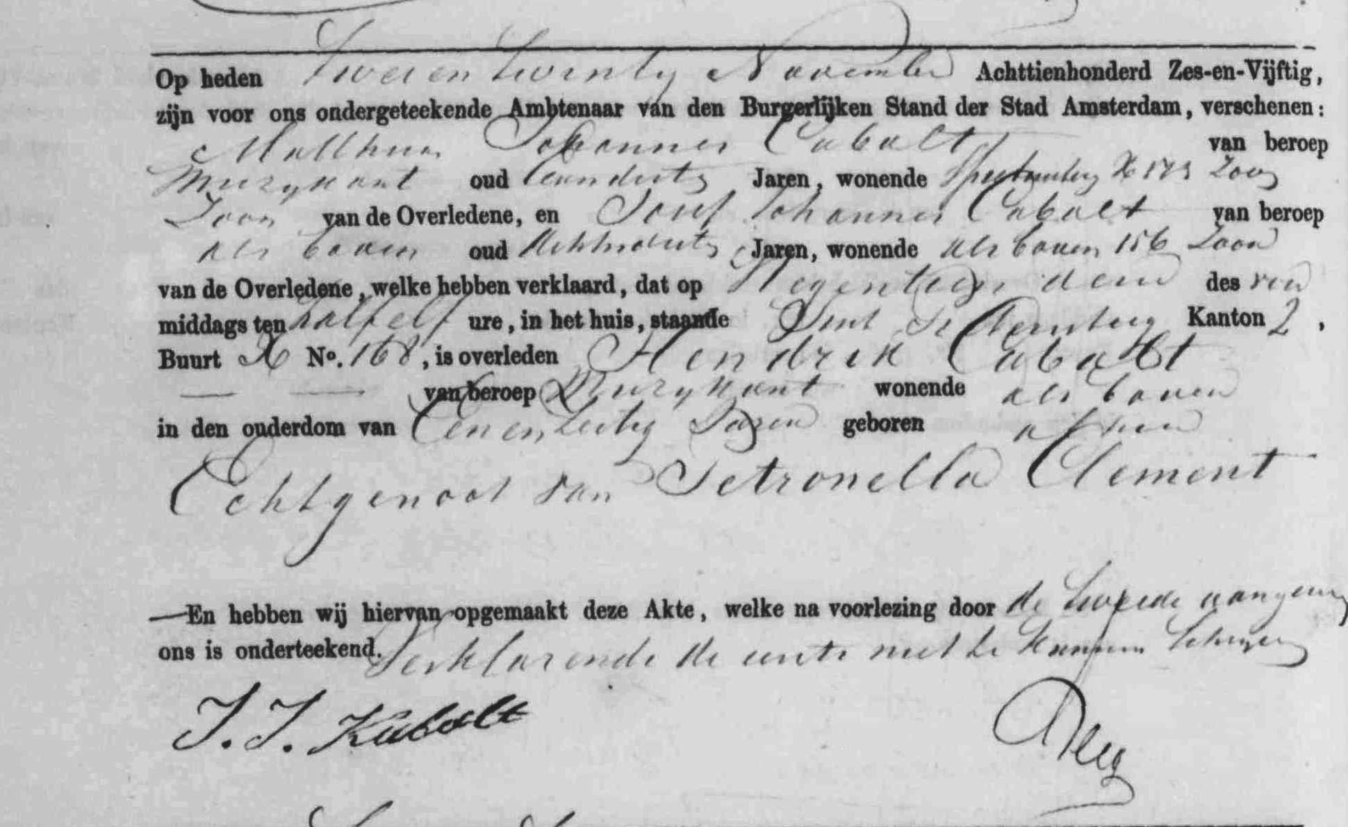 Albertus Cabalt (Kabalt) Geboren: 26 augustus 1845 27 28 — Amsterdam (N-H) Overleden: 8 september 1894 — Amsterdam (N-H) |