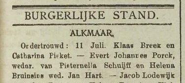Huwelijk: 26 juli 1863 — Alkmaar (N-H) |