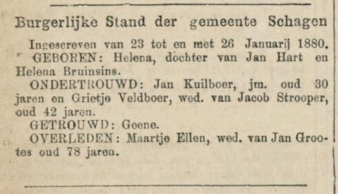 | Geboorte van een dochter #3 | Helena Hart 23 januari 1880 (Leeftijd 27 jaar) |