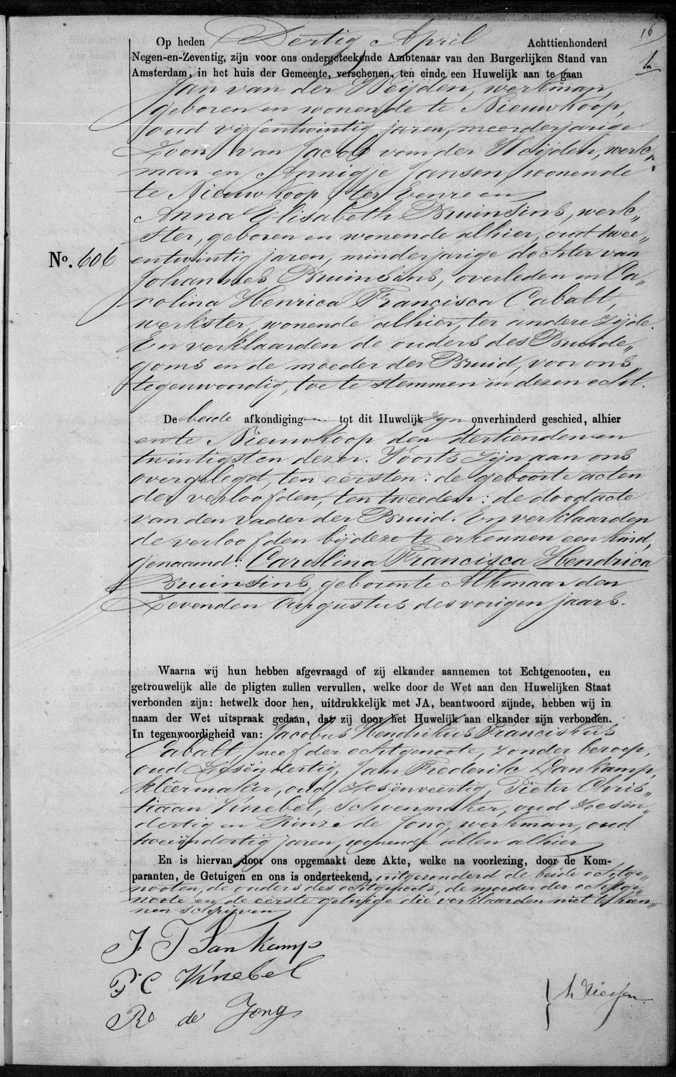 | Huwelijk van een kind | Jacob (Jakop) van der Weijden — Annigje (Annegie) Jansen — Bekijk dit gezin 22 april 1850 (Leeftijd 51 jaar) |