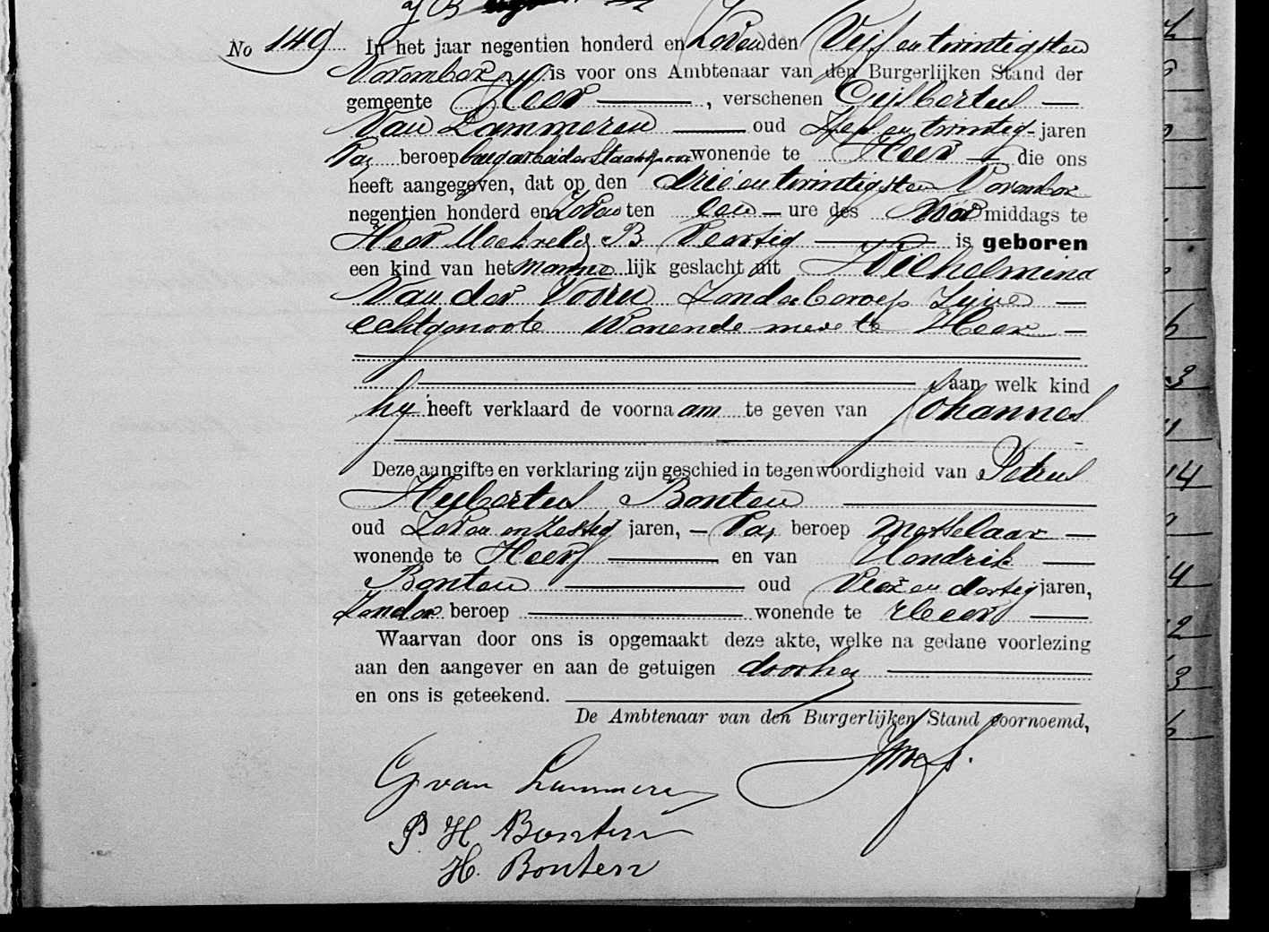 | Geboorte van een zoon #2 | Johannes van der Voorn 1882 (Leeftijd 27 jaar) |