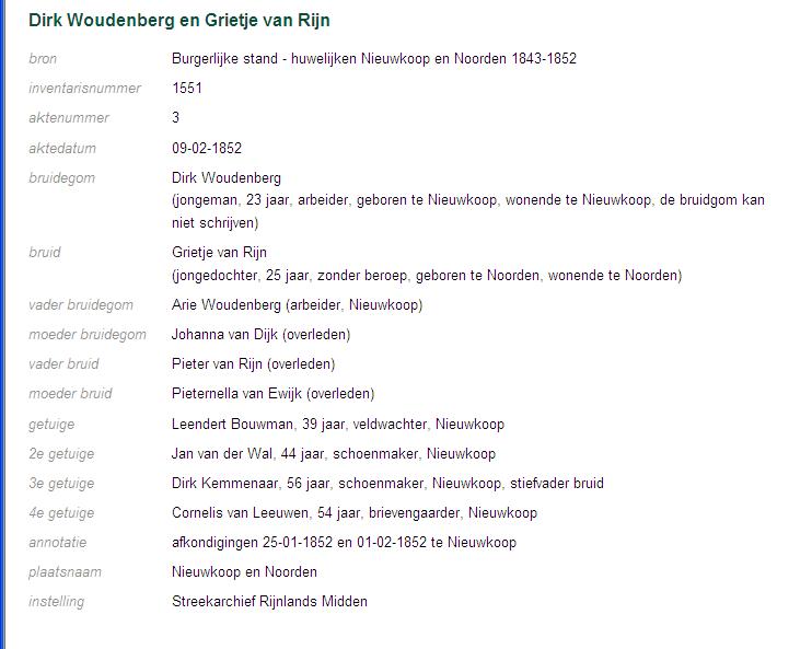 Huwelijk: 9 februari 1852 — Nieuwkoop-Noorden (Z-H) |