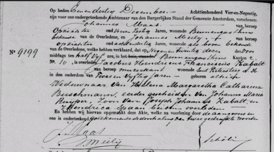 Jacobus Hendricus Franciscus ‘Kootje’ Cabalt (Kabalt) Geboren: 13 december 1842 24 25 — Amsterdam (N-H) Overleden: 29 december 1894 — Amsterdam (N-H) |