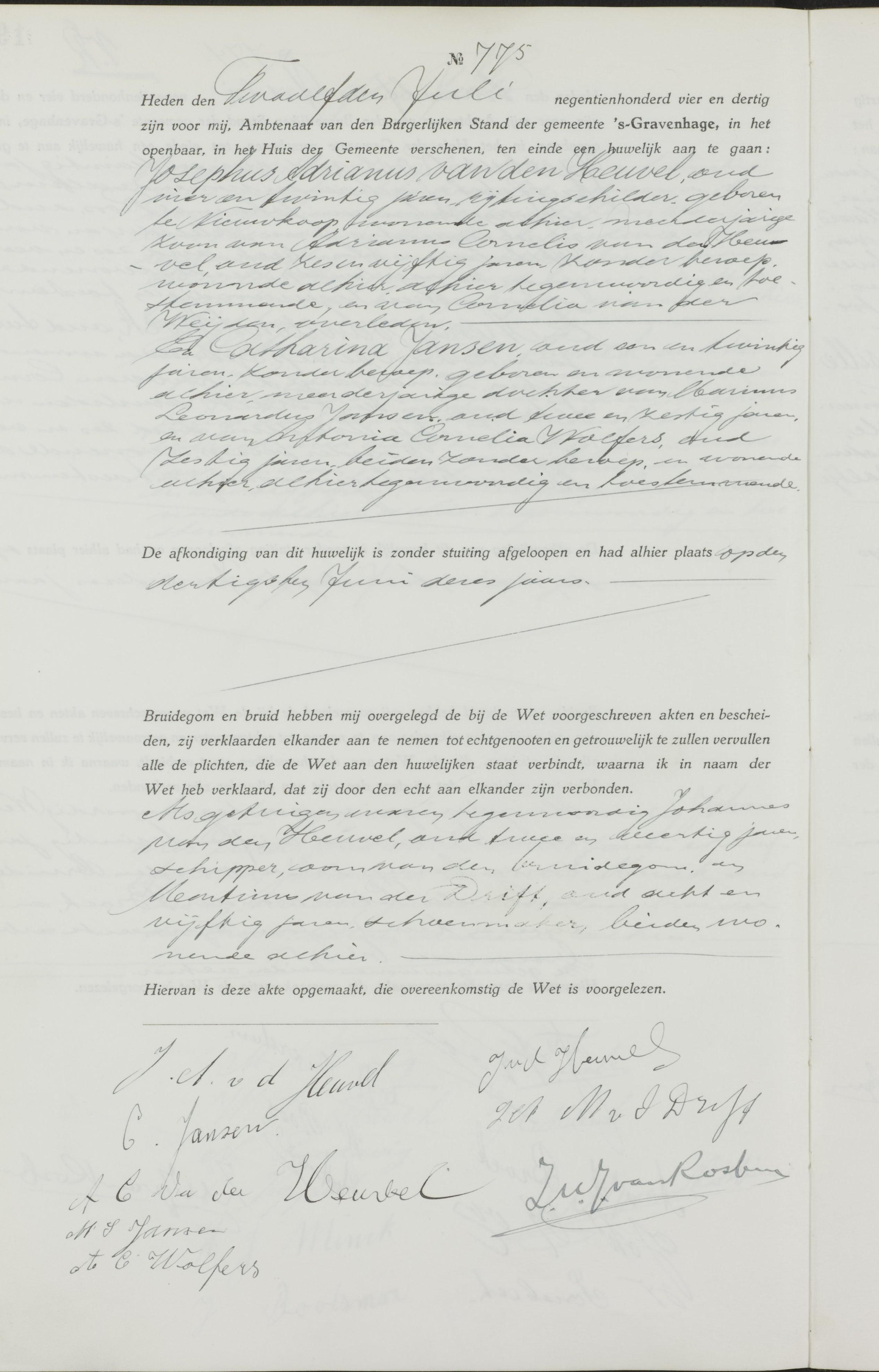 | Huwelijk van een broer/zus | Josephus Adrianus van den Heuvel — Catharina Jansen — Bekijk dit gezin 12 juli 1934 (Leeftijd 30 jaar) |