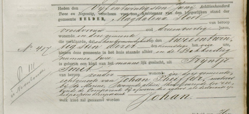 Johan Pheiffer Geboren: 22 juni 1892 28 24 — Den Helder (N-H) |
