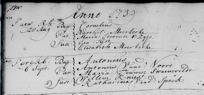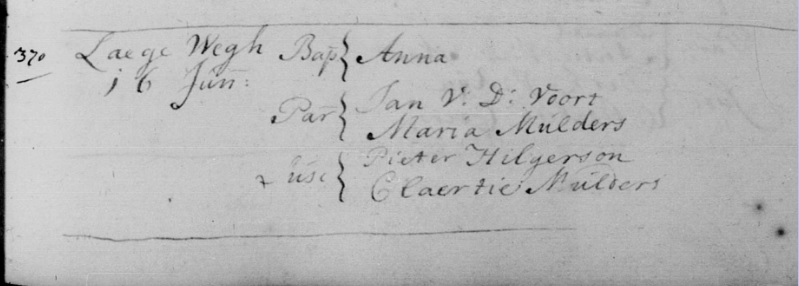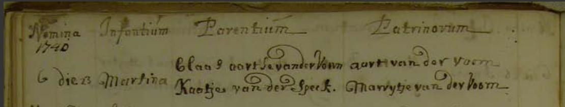 | Geboorte van een kleinzoon #18 | Antonius ‘Teunis’ van der Voorn 6 september 1739 (Leeftijd 69 jaar) Getuige: Willem Jansz Kniest — aangetrouwde oom |