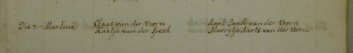 | Geboorte van een kleindochter #14 | Martijntje van der Voorn (Vooren) 1737 (Leeftijd 67 jaar) |