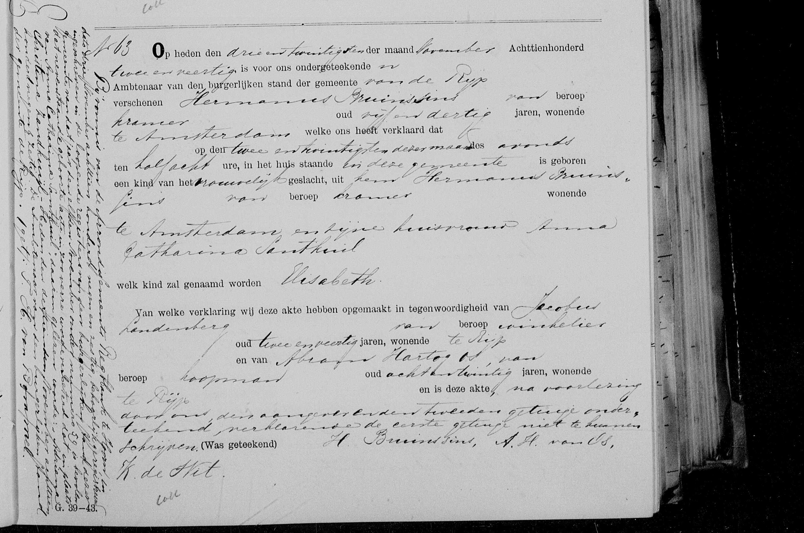 Hermanus Hendrikus Bruinsins Geboren: 31 augustus 1836 27 29 — De Rijp (N-H) Overleden: |