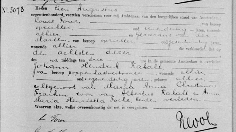 Geboren: 13 november 1874 29 33 — Amsterdam (N-H) Overleden: 8 augustus 1914 — Amsterdam (N-H) |