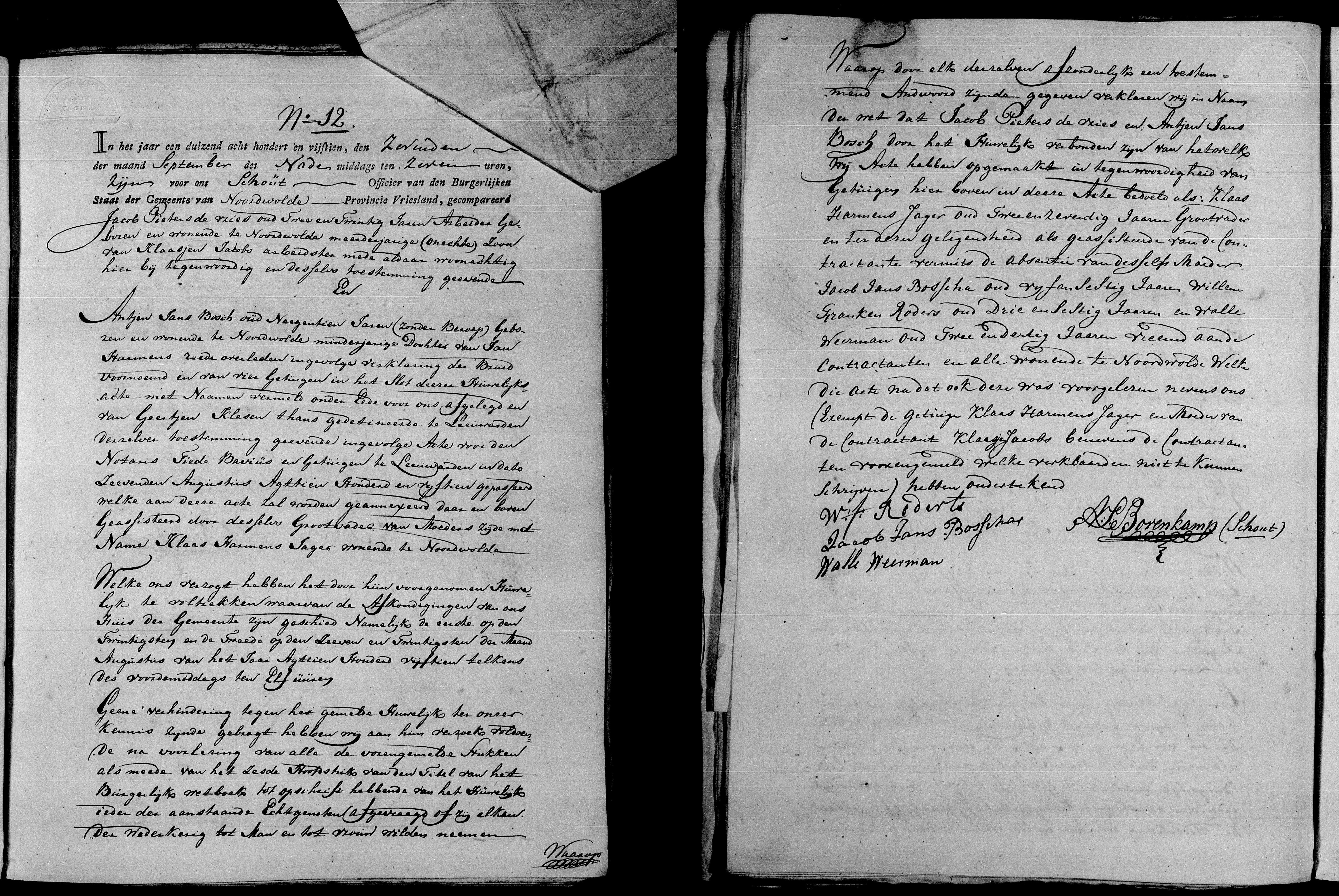 Johannes Jans Bosch Geboren: 1805 27 28 — Noordwolde (Friesland) Overleden: 27 oktober 1877 — Weststellingwerf (Friesland) |
