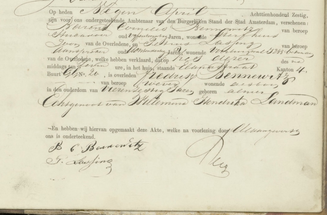 | Overlijden van vader | Johan Friedrich Ludewig ‘Frederik’ Bennewitz 1 april 1806 (Leeftijd 8 jaar) Adres: Op de schaans, bij de hooge sluijs. Aan de Steunmolen "De Leeuw" Oorzaak: Zikoorts |