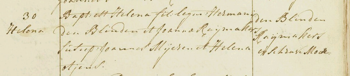 | Overlijden van vader | Gijsbrecht Emanuel ‘Hermanus’ den Blinde (Blinden) 9 augustus 1814 (Leeftijd 31 jaar) |