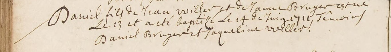 | Doop van een zus | Jeanne Willer 25 mei 1721 (Leeftijd 9 jaar) Adres: Waalse Kerk |