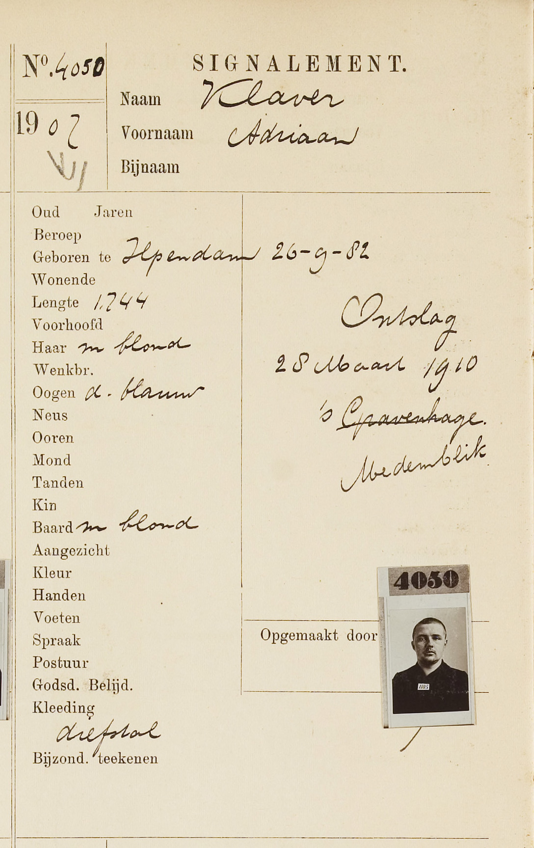 Dirk Klaver Geboren: 7 januari 1870 30 20 — Ilpendam (N-H) |