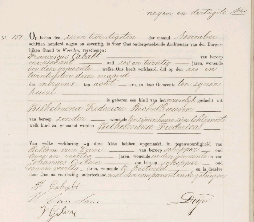 | Geboorte van een kleindochter #4 | Wilhelmina Frederica Cabalt (Kabalt) 26 november 1879 (Leeftijd 52 jaar) |
