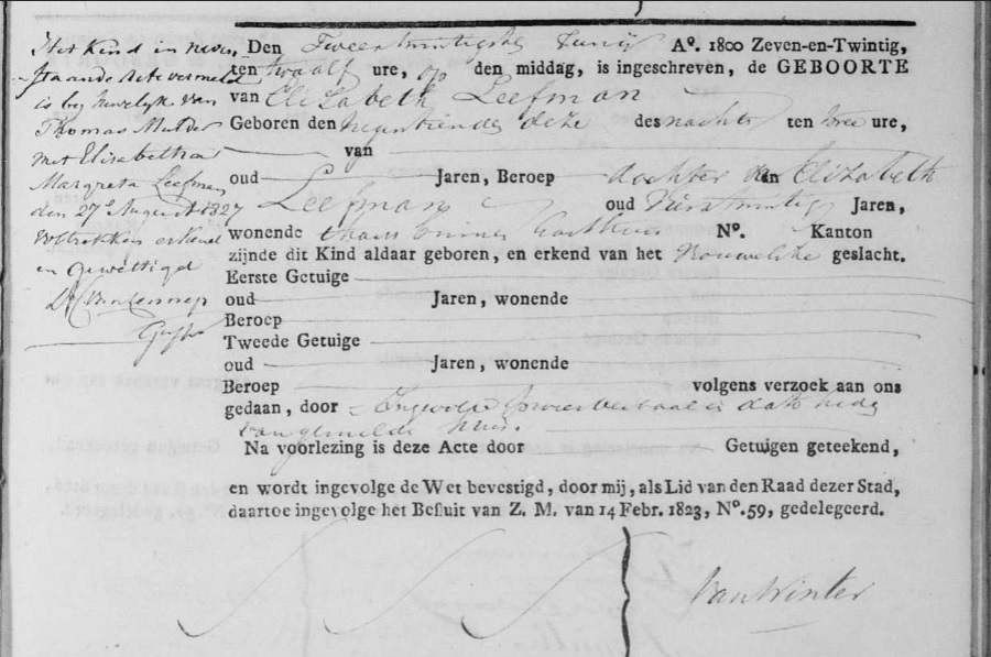 | Huwelijk van ouders | Thomas Mulder — Elisabetta Margreta Leefman — Bekijk dit gezin 27 augustus 1828 (Leeftijd 14 maanden) |