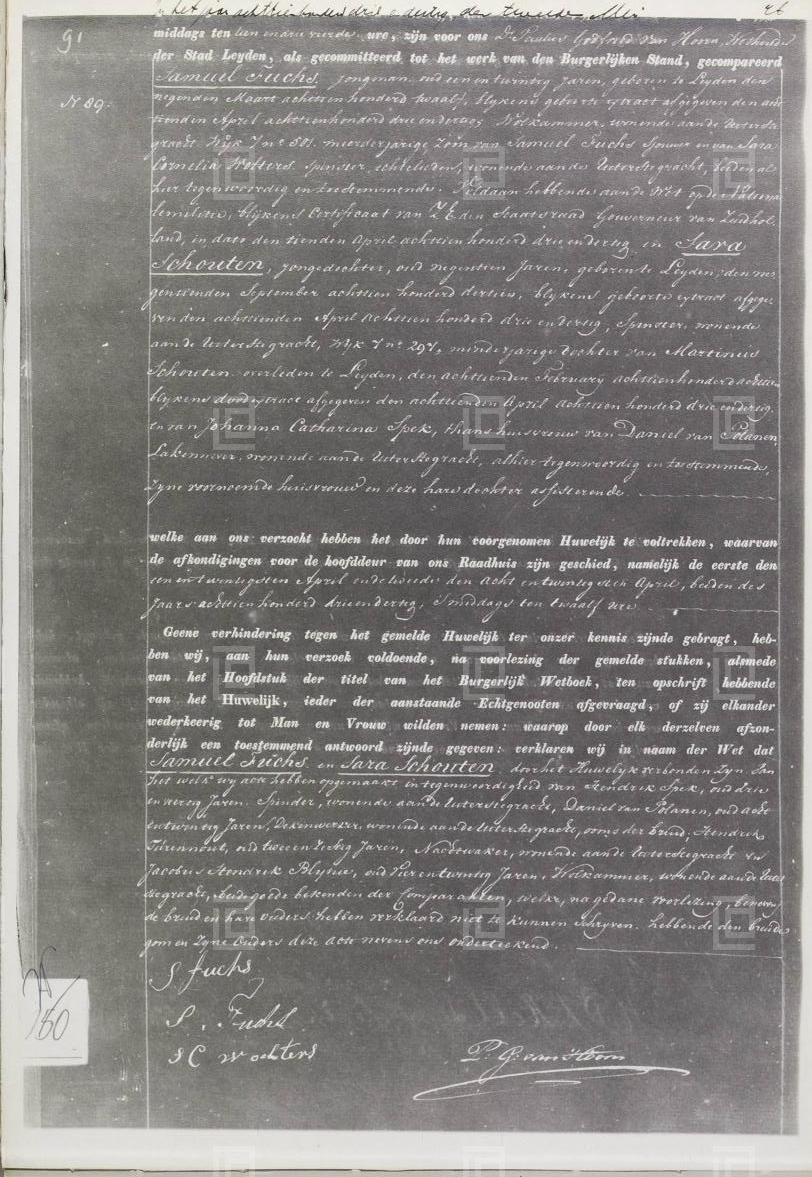 | Huwelijk van een kind | Samuel Fuchs — Sara Schouten — Bekijk dit gezin 2 mei 1833 (Leeftijd 46 jaar) |