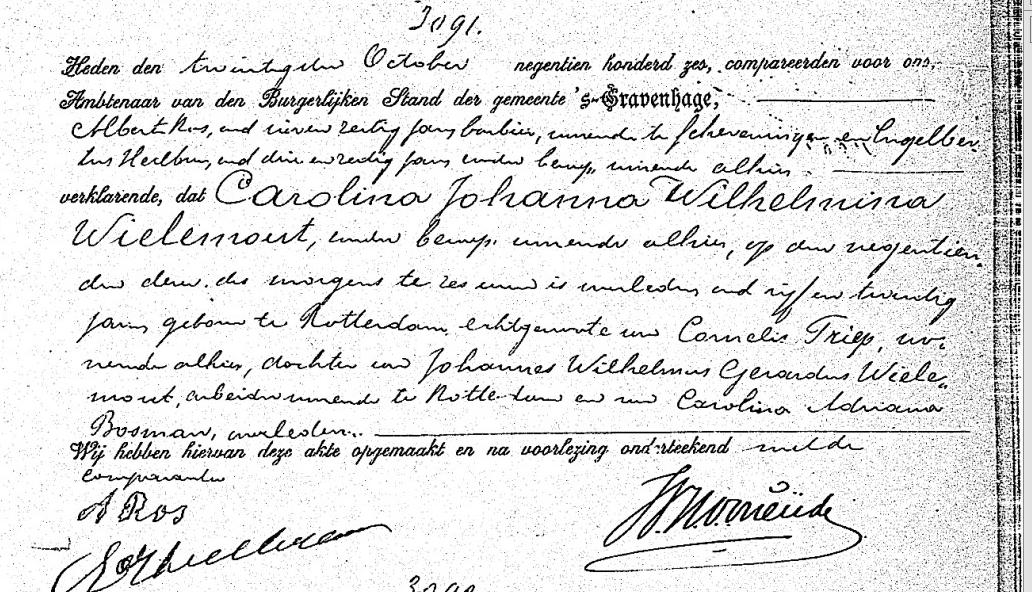 Carolina Johanna Wilhelmina Wielemout Geboren: 23 november 1880 22 26 — 's-Gravenhage (Z-H) Overleden: 19 oktober 1906 — 's-Gravenhage (Z-H) |