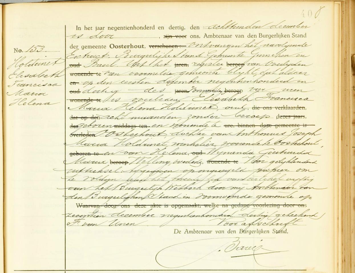 Elisabeth Francisca Maria Helena Holdrinet Geboren: 1930 48 39 Overleden: 1 december 1930 — Ginneken en Bavel (N-B) |