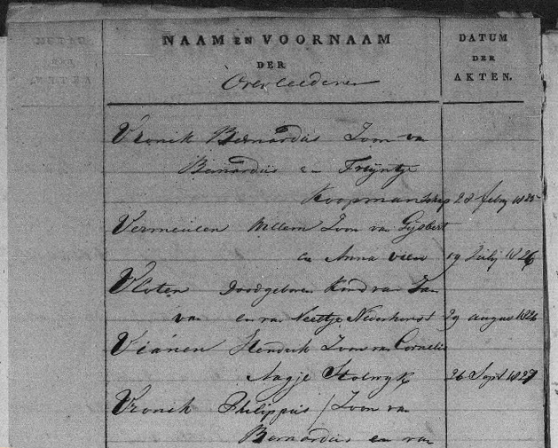 | Overlijden van een dochter | Agatha Vianen 13 december 1816 (Leeftijd 39 jaar) |