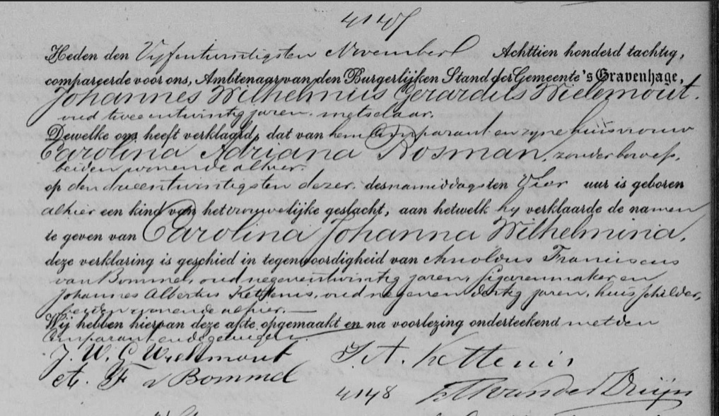 | Geboorte van een dochter #2 | Carolina Johanna Wilhelmina Wielemout 23 november 1880 (Leeftijd 26 jaar) |