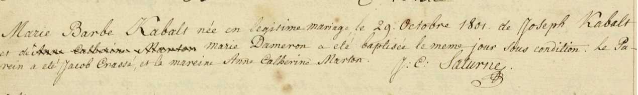 Doopregister Amsterdam. Marie Barbe Kabalt 29 oktober 1801