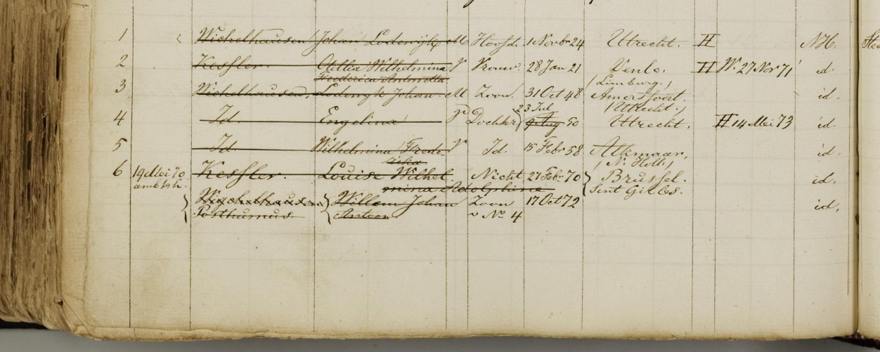 | Johan Lodewijk Wichelhausen | 1 november 1824 | 201 | Utrecht (Utrecht) | 8 | 27 november 1871 | 154 | 47 | Leeuwarden (Friesland) | M | YES | YES | |||||